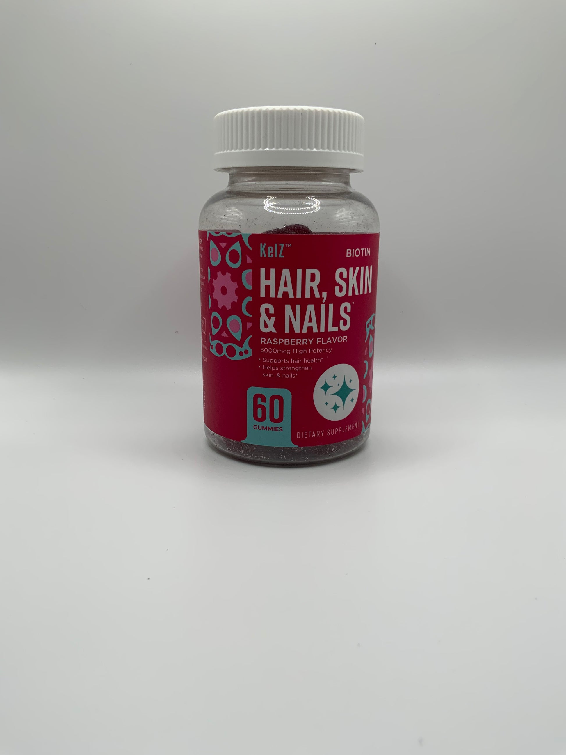 - KelZ Biotin Hair, Skin & Nails Supplement Gummies, Raspberry Flavor Improve Hair Health, Strengthen Skin & Nails