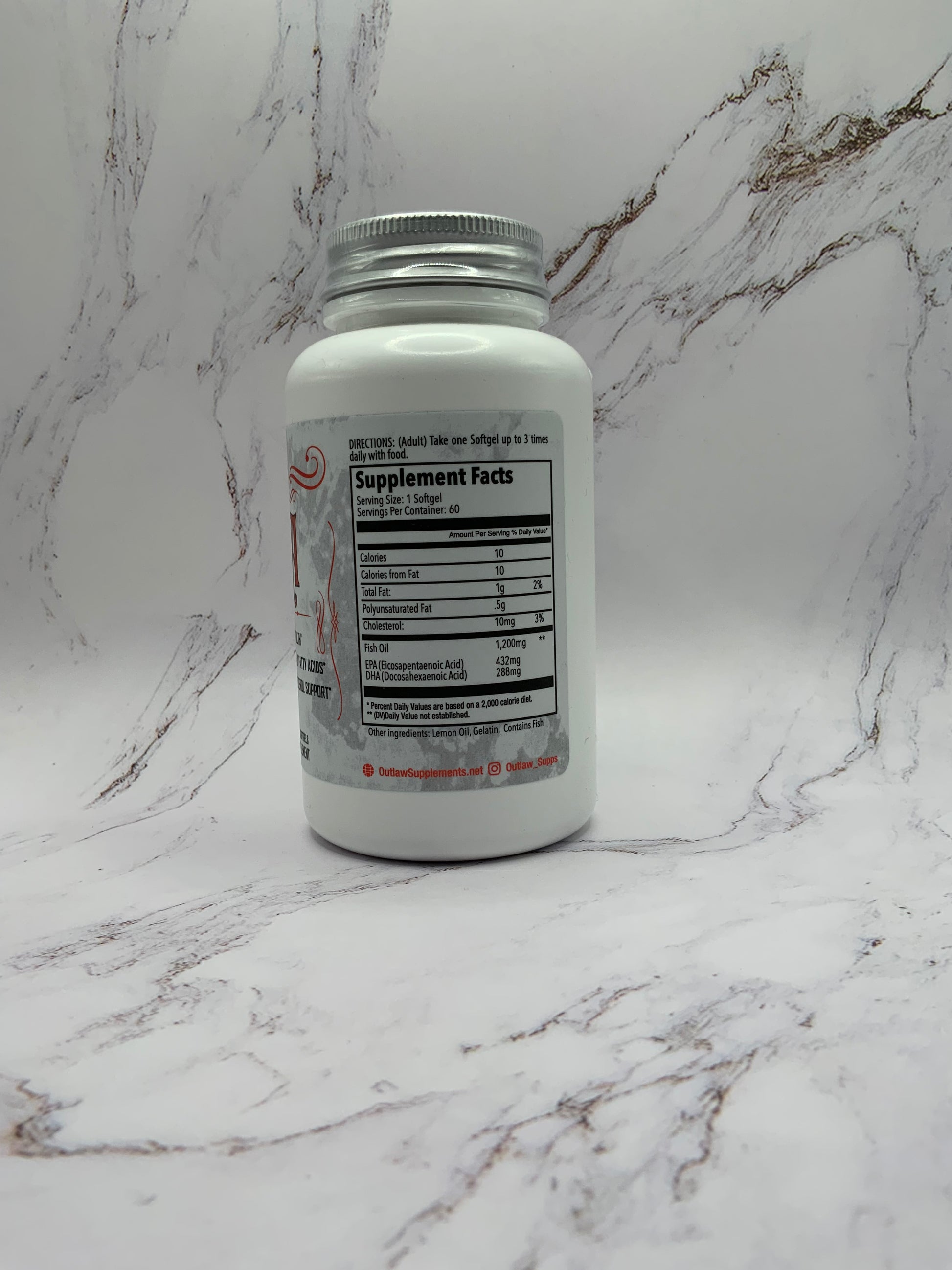 If you're looking for an easy way to enjoy the benefits of Omega-3s without the powerful, fishy aftertaste, turn to Outlaw Supplement's Omega soft gels. When you take one capsule daily with food, this fish oil dietary supplement helps support optimal eye and brain function, cardiovascular health, and skin and joint health.